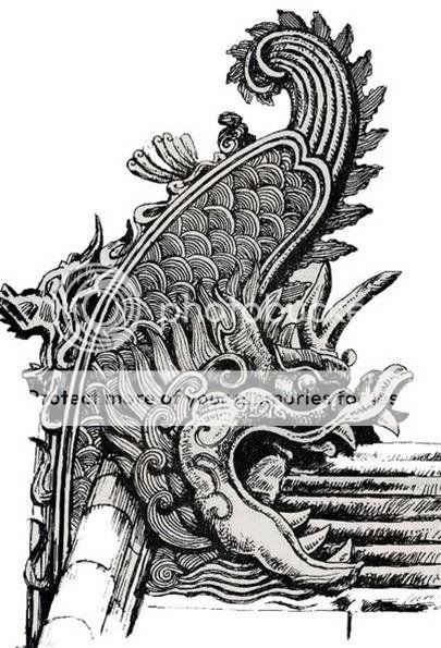 Con thứ bảy của rồng - là linh vật có tính khí hung hăng, thường nổi cơn thịnh nộ và ham sát sinh, thường được chạm khắc trên các vũ khí như đao, búa, kiếm, xà... ngụ ý thị uy, làm tăng thêm sức mạnh và lòng can đảm của các chiến binh nơi trận mạc.