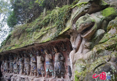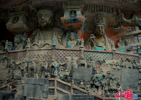 Huyện Đại Túc, thành phố Trùng Khánh, Trung Quốc có một kho tàng các tác phẩm tượng điêu khắc về tôn giáo có niên đại từ thế kỷ 7 trước công nguyên. Theo thống kê, có khoảng 50.000 bức tượng khác nhau nằm trên vách đá dọc sườn đồi trên các ngọn núi của huyện Đại Túc. Ảnh trên China.