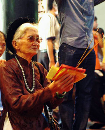 Phạm Thị Hương Giang, một lưu học sinh ở Pháp, cho biết cô thỉnh thoảng vẫn lên chùa với một người bà con. “Bà dì họ em lấy chồng Tây, bố mẹ ở Việt Nam đã mất từ lâu. Cứ đến ngày giỗ, ngày Tết, dì lại lên chùa lễ, nói là cho đỡ nhớ gia đình, nhớ quê, dì vẫn rủ em đi cùng”, Giang tâm sự. Cô cho biết hồi đầu hơi thất vọng khi nhìn những ngôi chùa lộng lẫy, hiện đại khác hẳn vẻ trầm mặc, rêu phong của chùa Bắc bộ quê mình, “nhưng khi vào lễ thì về mặt tâm linh thấy không có gì khác, rất quen thuộc, rất Việt Nam”.