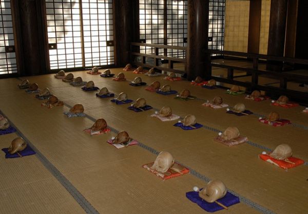 Tri Ân viện còn nổi tiếng vì có trường lang có tên là “Oanh Minh Lang Hạ” khi có người đi trên trường lang thì nó sẽ phát ra âm thanh nghe như tiếng chim hót, có công năng thức tỉnh chư Tăng vào ban đêm nếu như có người lạ xâm nhập. Chùa có cái Thược múc cơm cổ lớn nhất Nhật Bản, những bức tranh vô cùng quý giá của hoạ sĩ thuộc “Thú Dã Phái” vẽ, như bức “Phi Tẩu Tước” bức “Tam Diện Mao” và chiếc dù “ Vong Tán” của người thợ nổi tiếng Nhật Bản để trên trần chánh điện làm phép định hoả. Tất cả 7 Pháp vật lớn và hiếm có của Tri Ân Viện đồng thời là của Phật Giáo Nhật Bản, dân gian Nhật Bản thường xưng tụng “Thất bất khả tư nghì”. Thật là cảnh giới Tây Phương Cực Lạc hiện ở trần gian.